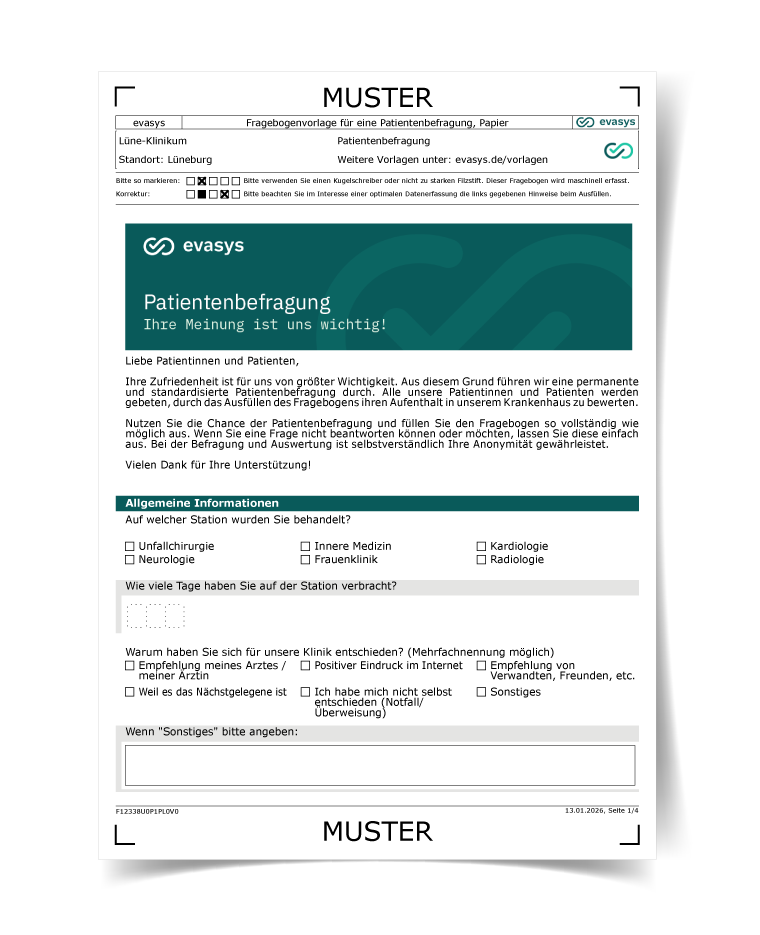- Flexibel kombinieren: Ideal als Ergänzung zur Onlineumfrage, um auch Patient*innen ohne digitales Endgerät zuverlässig zu erreichen.